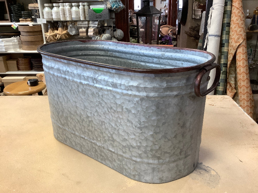 Our galvanized oval buckets say modern farmhouse and are good for multitudes of uses. They come in two sizes and are just fine by themselves but could easily be upcycled with our DIY products to fit a more contemporary style. Please note that these are not guaranteed to be watertight but could serve as a receptacle for greens, wood, magazines etc.