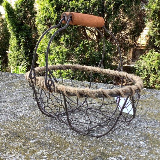 Chicken wire basket with wood handles