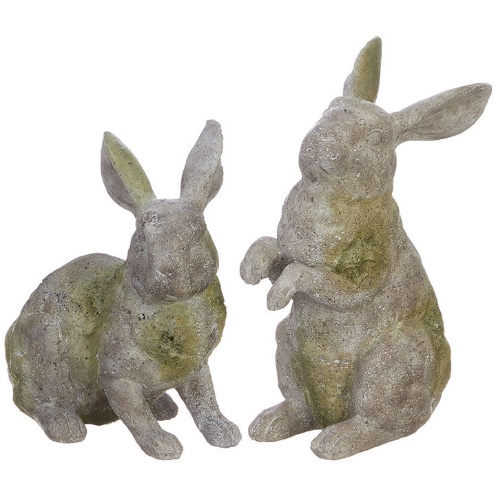 These cement looking rabbits make a great spring/summer garden accent. two styles are available. Must be brought indoors in norther climates.