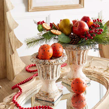 This is a reproduction of an old painted urn. The details are impressive right down to the chippy paint making it look like you inherited it from your old Aunt Betty.