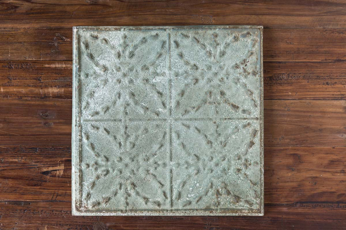 Use these antique tin ceiling tiles to add nostalgic impact. Available in aged green or aged white. These tiles make a great back splash or piece of artwork. Of course they can be used on the ceiling as well. 12.5" x 12.5" x .25"