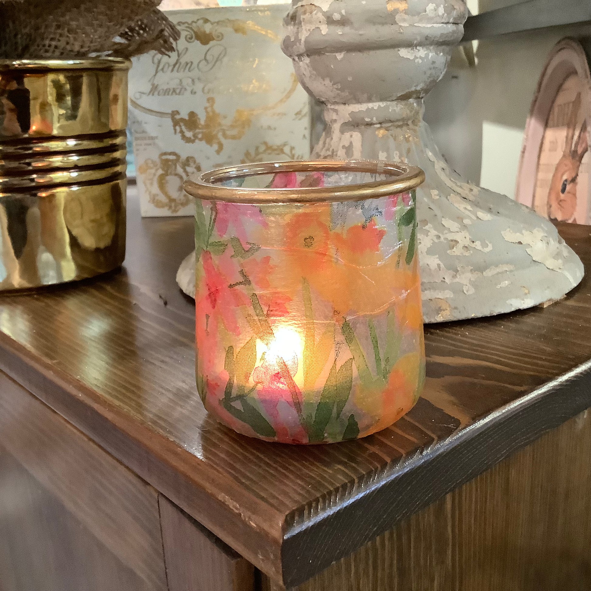 In this workshop you will create 2 candle cups that look like stained glass. We upcycle Oui yogurt jars using paper napkins and decoupage medium. No artistic skill is necessary! We have over 100 images to choose from create 2 matching designs or different designs from our collection of papers.