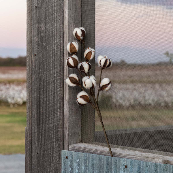 beautiful cotton stems will have you thinking you live on a cotton plantation. The natural looking stems look great by themselves or when mixed with other seasonal stems. Available in two different lengths. A great value.