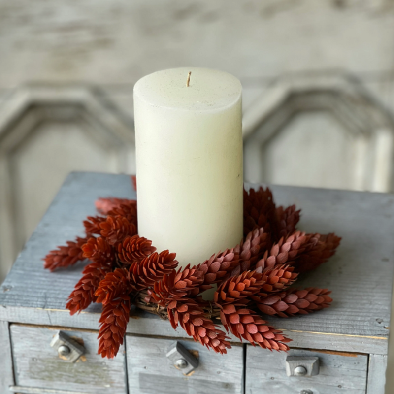 Beautiful fall hops ring perfect for a 3” candle. The color is a beautiful Rusty fall color perfect from September thru November.