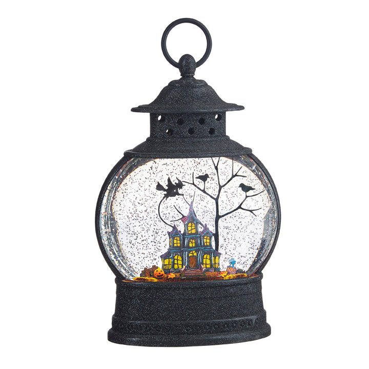 Lighted Halloween glitter water globe is mesmerizing. Watch as a witch flies through the sky while being watched by some mindful crows. Our water globes can be powered with either batteries (not included) or with USB cord (supplied). they feature a 6 hours on / 18 hour off timer.