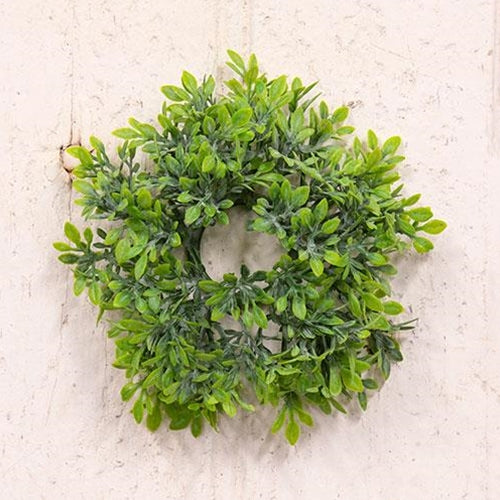 Morning Rain Candle Ring, 1" features neutral green leaves in a full candle ring. Perfect for taper candles.