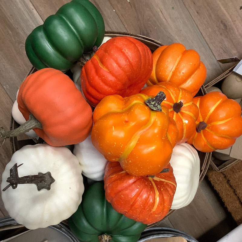 These are the same pumpkins we use in our crafts from painting to decoupage. Shapes and colors will vary so each is unique in its own way. If you purchase multiples we will select a variety of shapes and sizes so each will be unique. Sizes range between 3-1/2” and 4-1/2” in diameter.