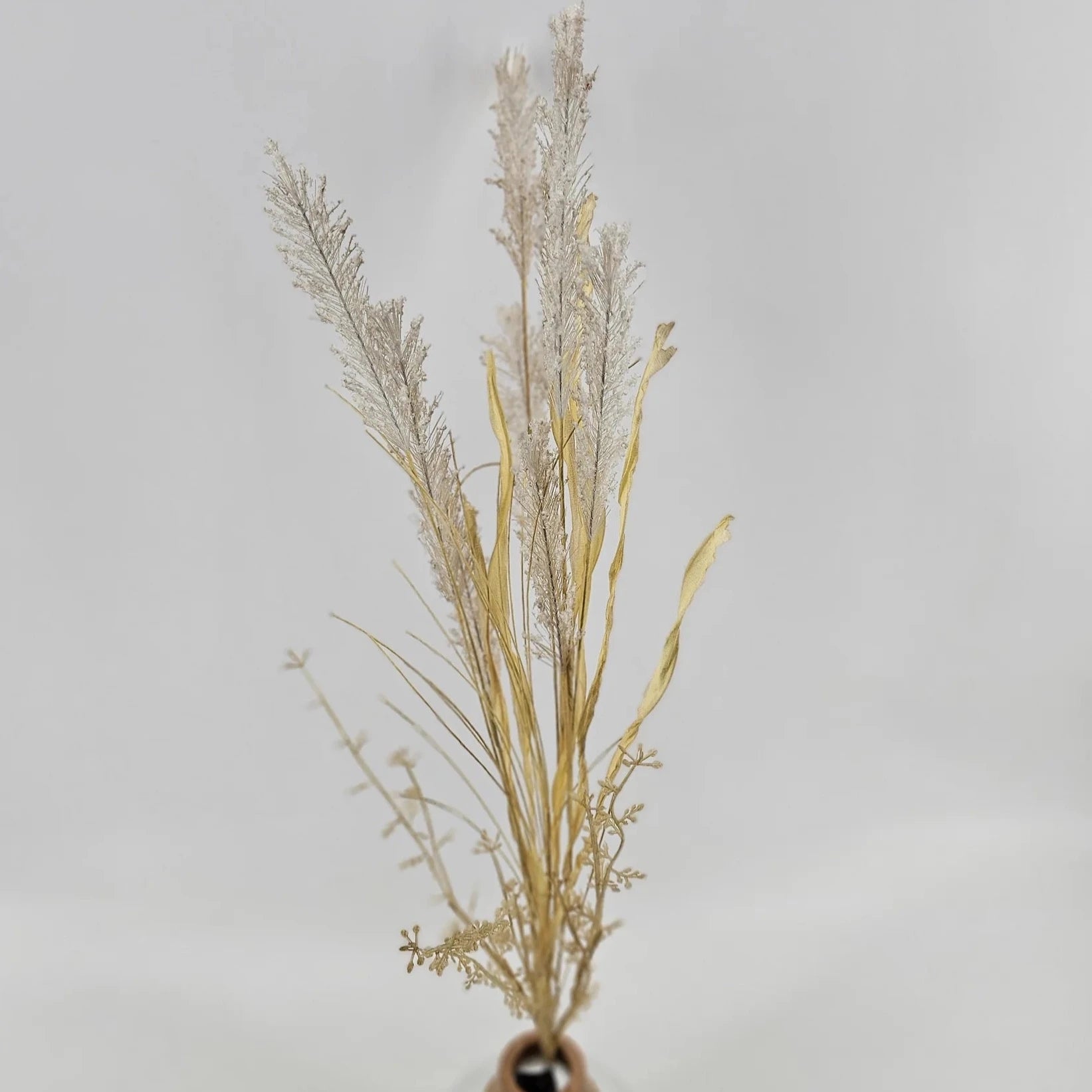 This whispy grass adds movement and texture where ever you put it. The flower stems have a feathery appearance and the dried almost corn husk plums of grass make it great for use in fall arrangements but equally at home in a more contemporary environment.