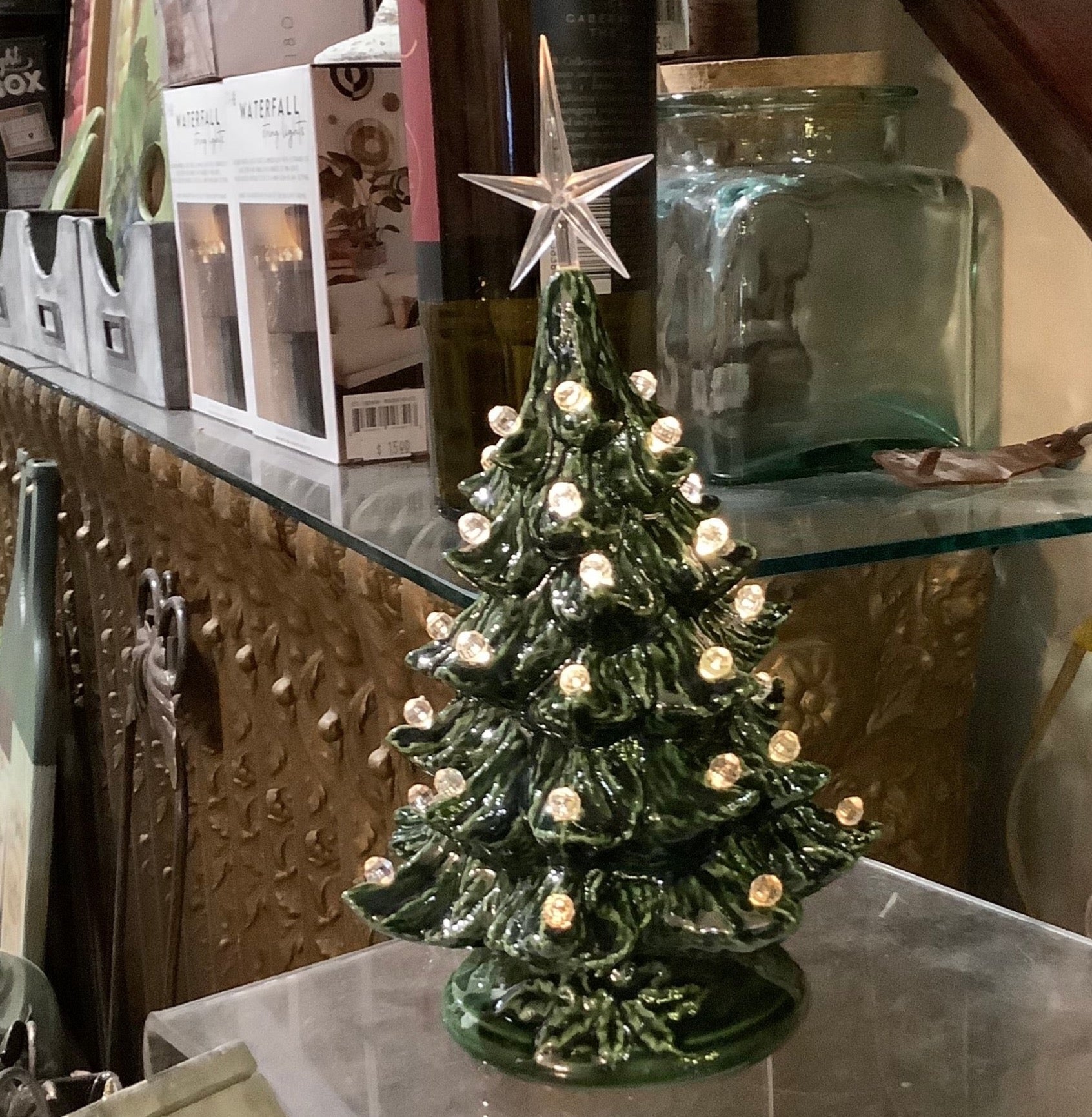 Fashioned like the ceramic Christmas trees that mom or grandma made in days gone by. Ours is hand glazed and comes with a led light bulb making it energy efficient and cooler to the touch than the old fashioned ones.