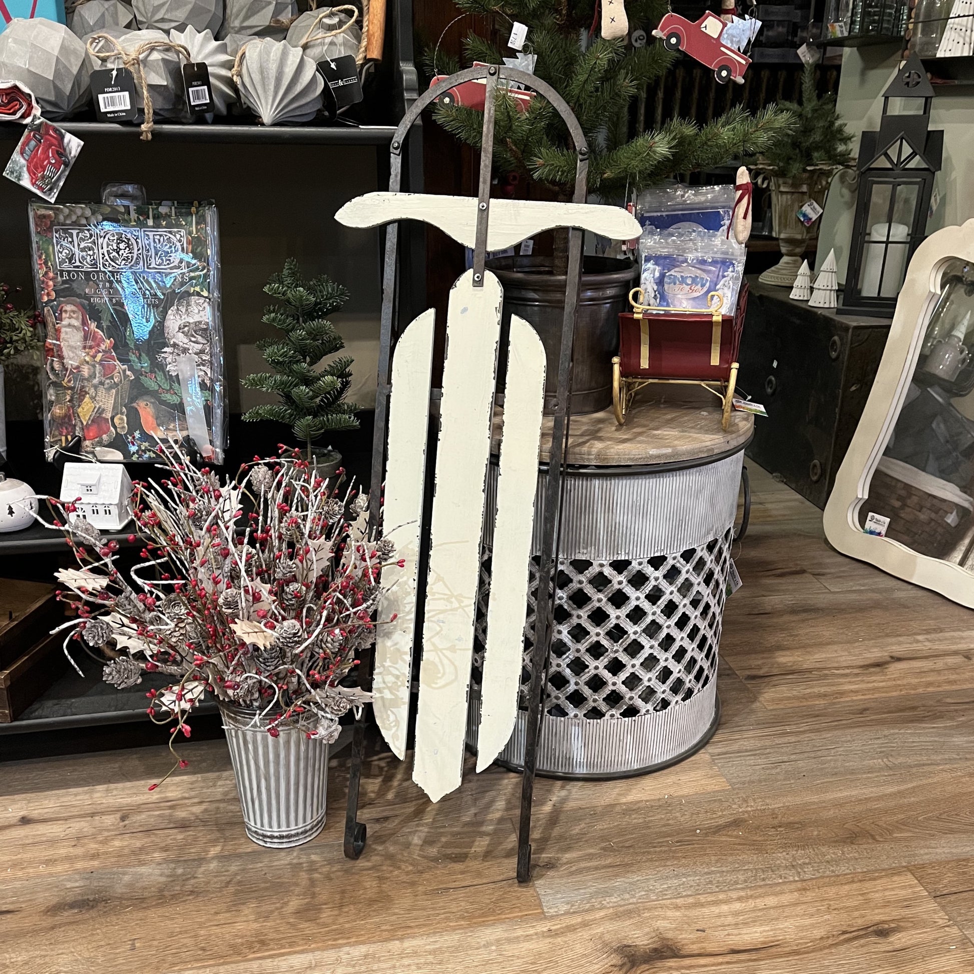 our sled can be customized with a custom stencil but is ready just the same to decorate your house. Add greenery, a bow or leave as is.