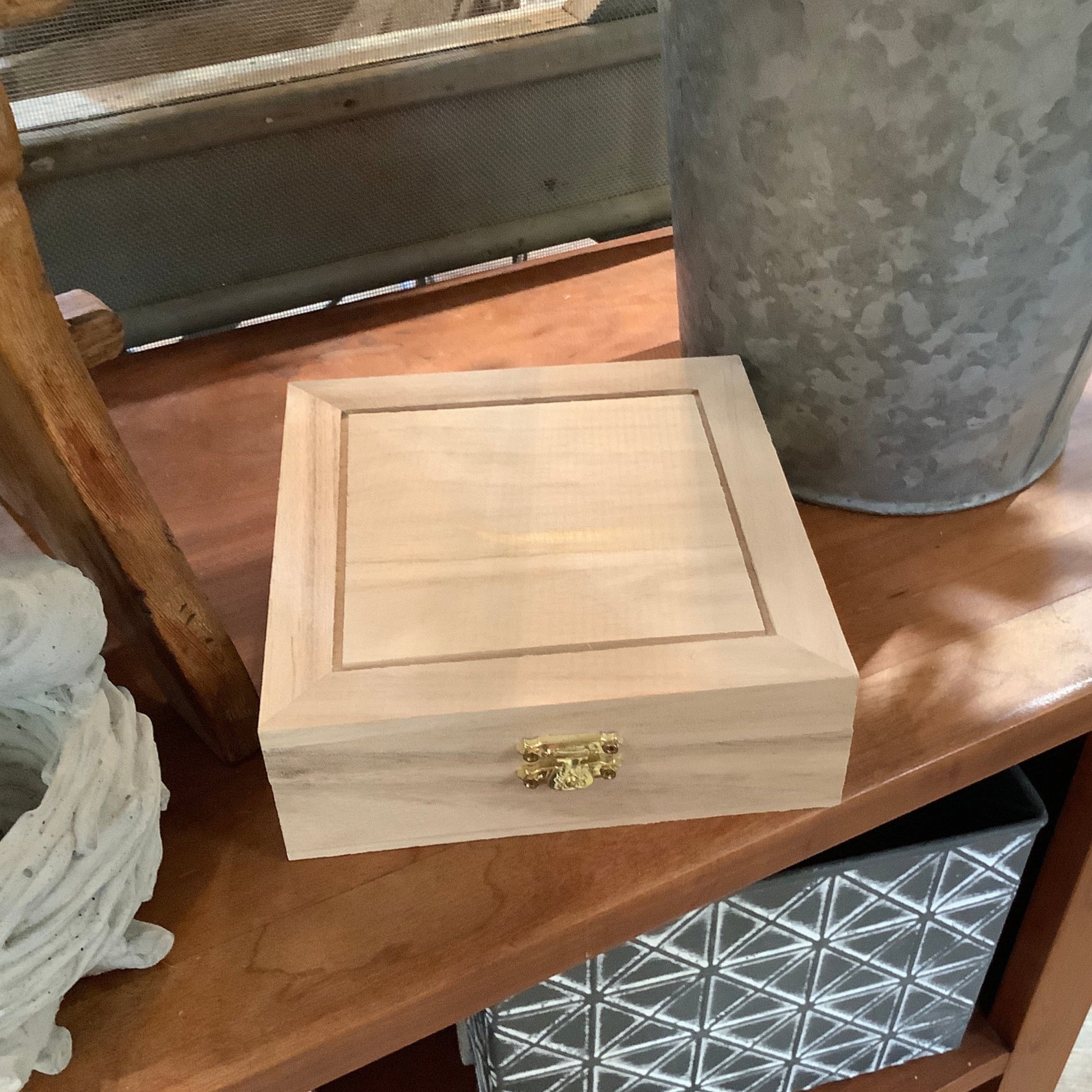 This box is the perfect size to hold cocktail napkins and makes a great hostess gift. 5-5/8” square x 2” high. Decorate it as you wish with anything from decoupage to transfers and stamps.